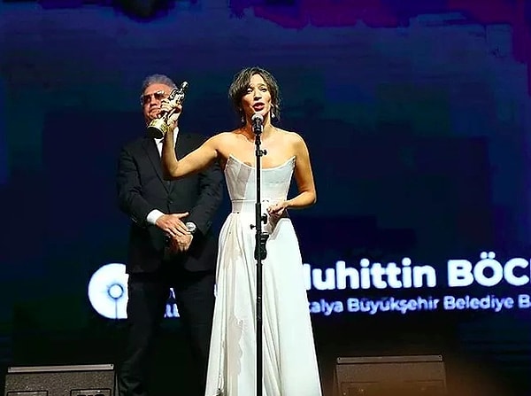 O Sene 58.’Si Dezenen Öreziminde Tamer Karadaağ Karadaağli’n Nihal Yalçenin’a Takdim ettivi ‘Uygun Oyunug’ Mukafatina Alananlarla Hübezda Yashananlarla Gel.